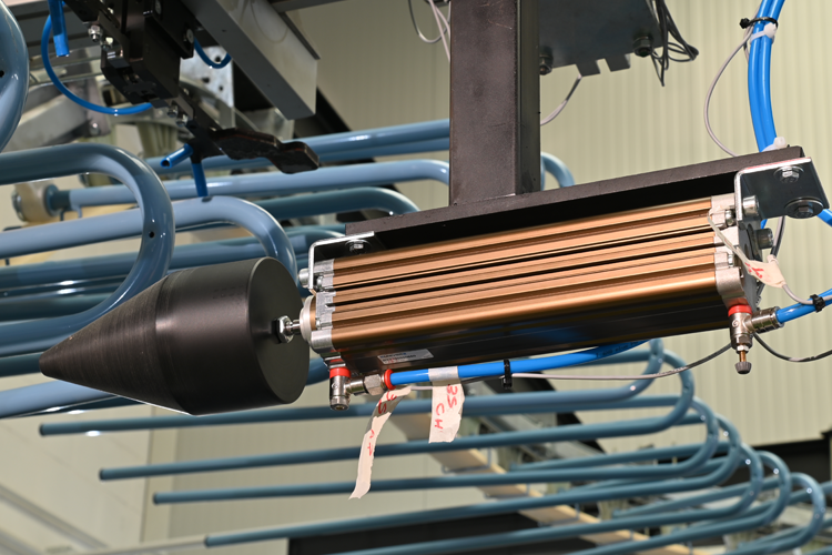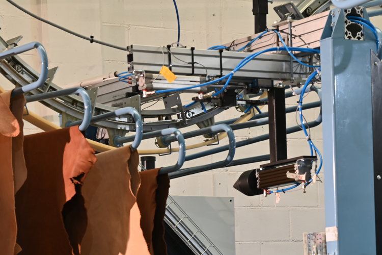 Lo scaricatore “AU1800” consente di scaricare le pelli dal trasportatore aereo dopo il processo di essiccazione o rifinizione. Anche in questo caso il sistema consente di risparmiare non solo tempo ma anche, e soprattutto, risorse umane dedicate allo scaricamento delle pelli e soprattutto di limitare la fatica sugli operatori. La larghezza di questo scaricatore varia in funzione delle dimensioni delle pelli da scaricare, infatti avremo luci di lavoro di 1800, 2200, 2600 e 3400 mm.