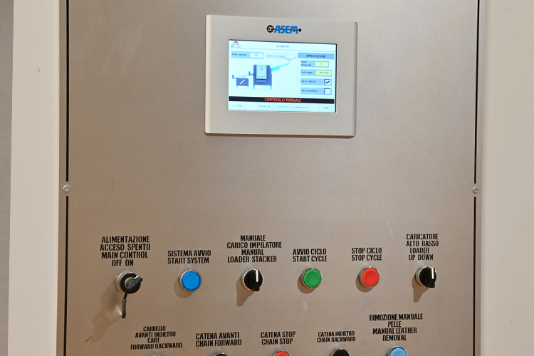 Una volta arrivata la bilancella nel punto di scarico il tappeto si solleva e scarica la pelle dalla bilancella in perfetta sincronizzazione.